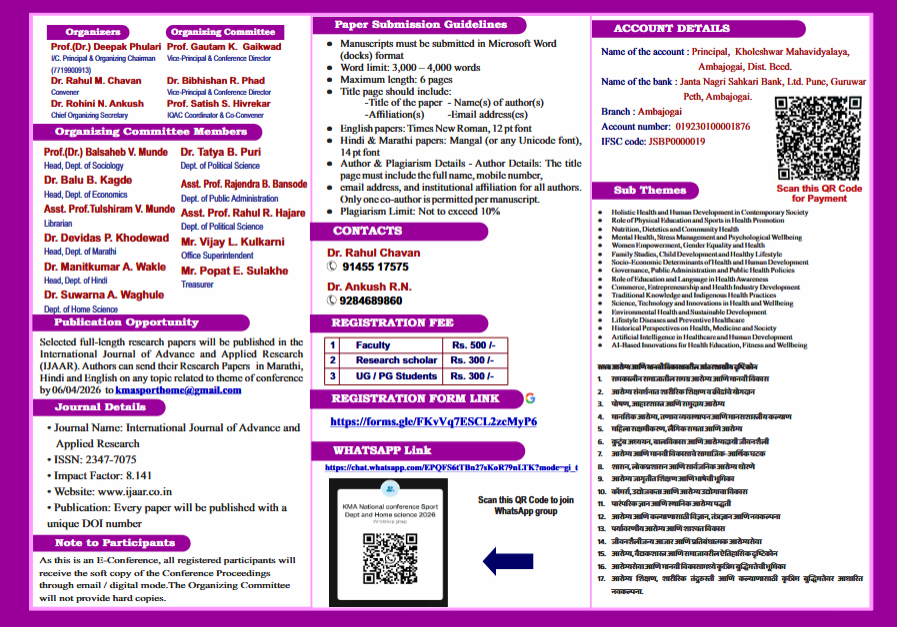1) Interdisciplinary one day National conference (Online) 8 April 2026